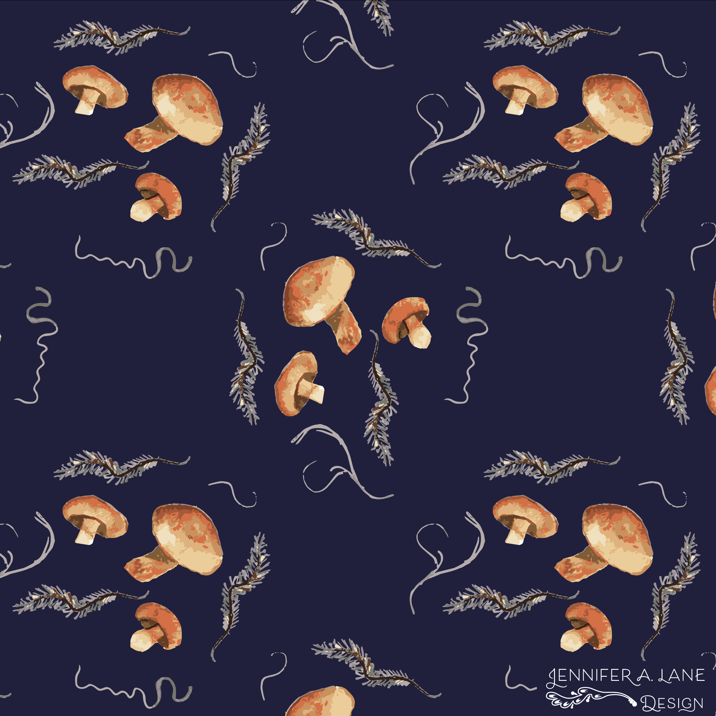 This collection of prints came out of my regular watercolor painting practice. I began with a warm, earthy palette and let my brush lead the way. I had recently discovered a love of drawing mushrooms, but this was the first time I tried painting them.