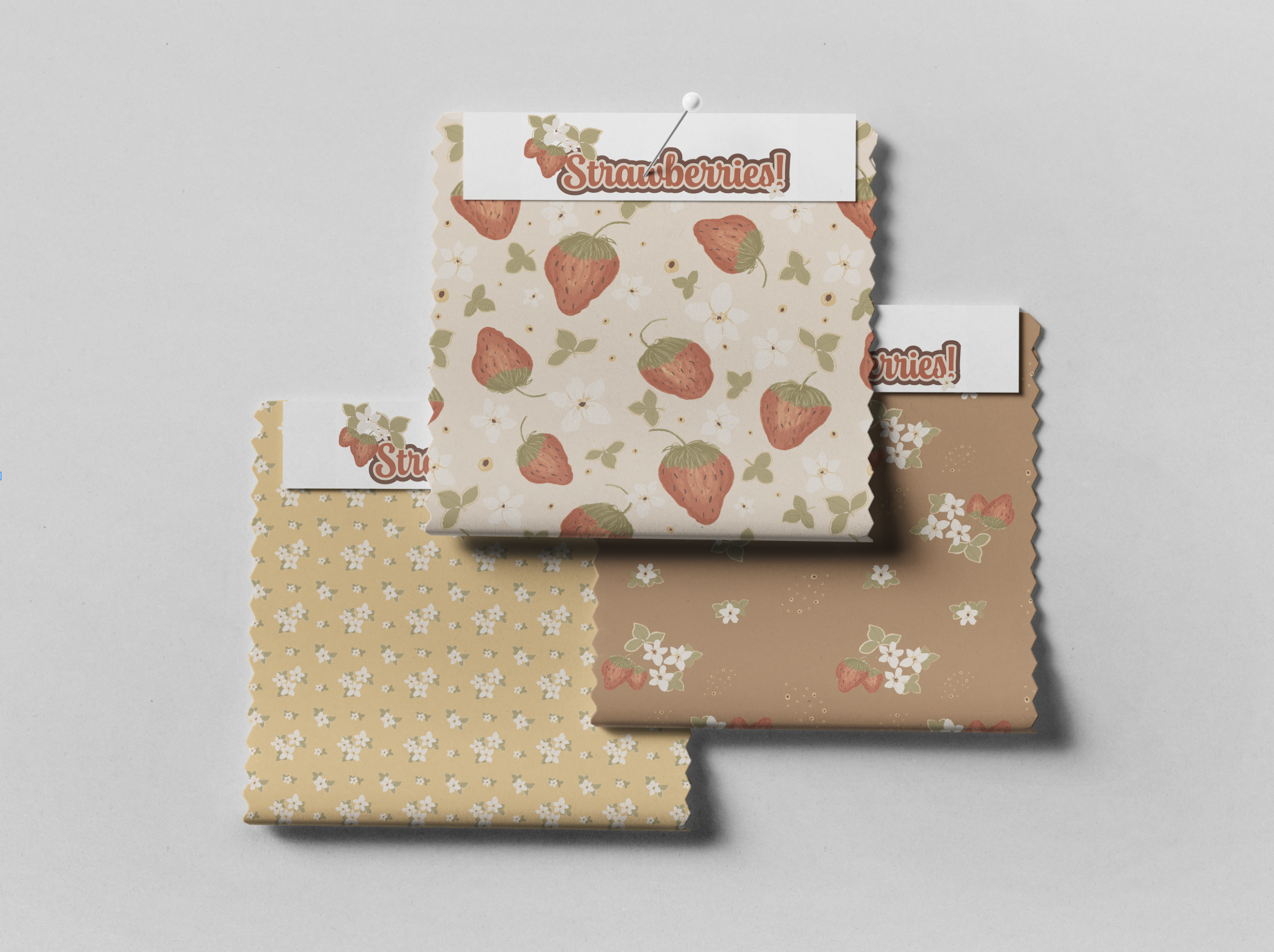 I aimed to make each print soft and nostalgic to match the memories of kneeling down in the soil and choosing each plump berry. This collection targets those looking for soft, feminine and nostaligic prints, those who enjoy an antique or cottage aesthetic.